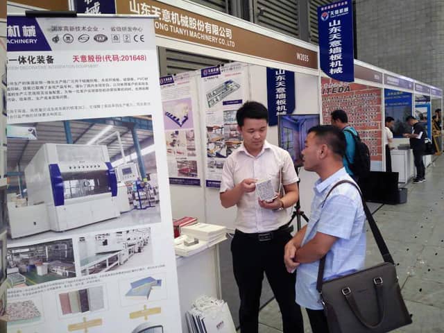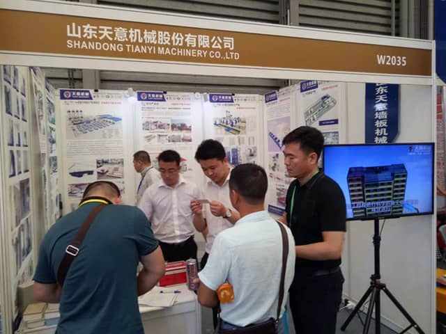 本次展覽會現場人頭攢動,氣氛十分熱烈,天意機械展位也是人氣火爆,前來咨詢鋼結構集成房屋、外墻保溫裝飾一體化板生產線,輕質墻板生產線、復合墻板生產線等產品的客戶絡繹不絕。銷售部李經理,熱情的向來訪的每位客戶,介紹了天意綠色建材裝備在鋼結構建筑、裝配式建產業化中的應用優勢。