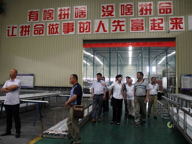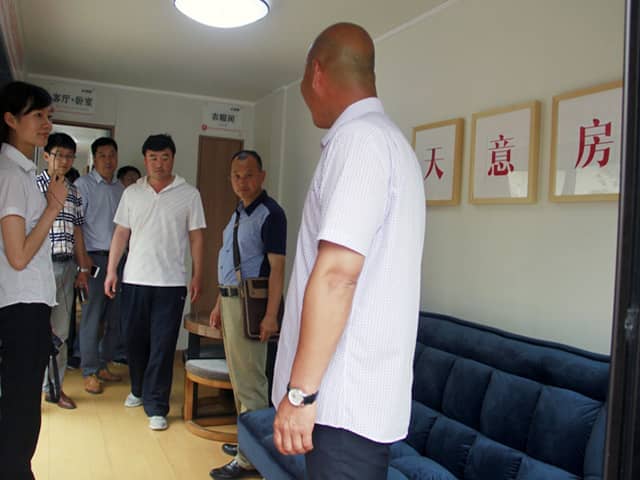 緊接著,參觀了天意樣板別墅、集成房屋、設備生產車間、鋁型材加工基地。專家領導團對我公司擁有的先進助力建筑垃圾廢棄物資源化利用的擠壓墻板生產線給予了高度評價。