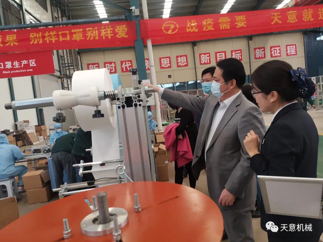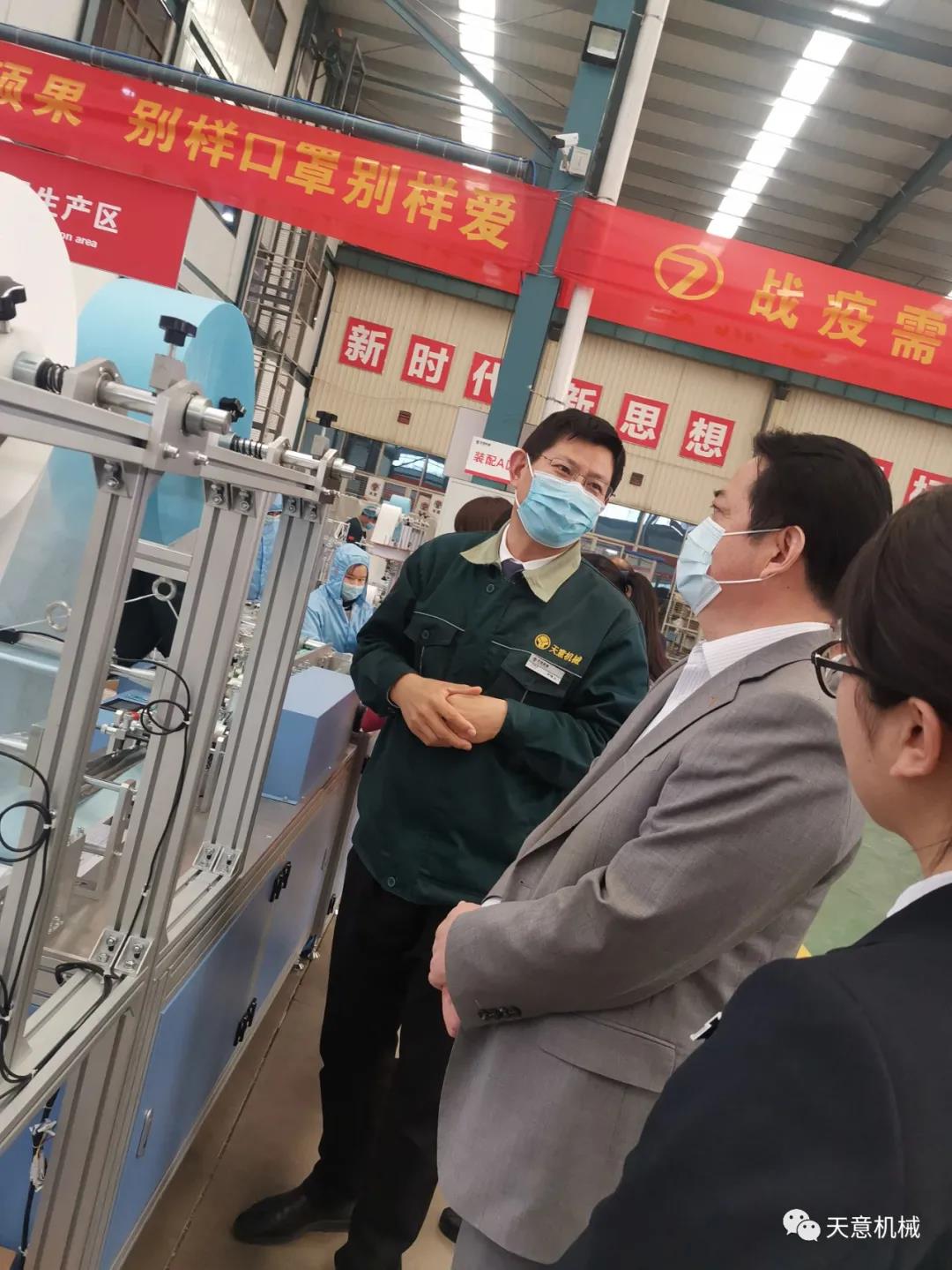 2020年4月14日,濟寧市司法局黨委副書記、副局長國慶啟一行蒞臨山東天意機械股份有限公司,就司法行政系統支持企業發展情況進行調研,兗州區司法局局長劉學民、副局長郭良,公司副總經理尹曙光等領導陪同調研。